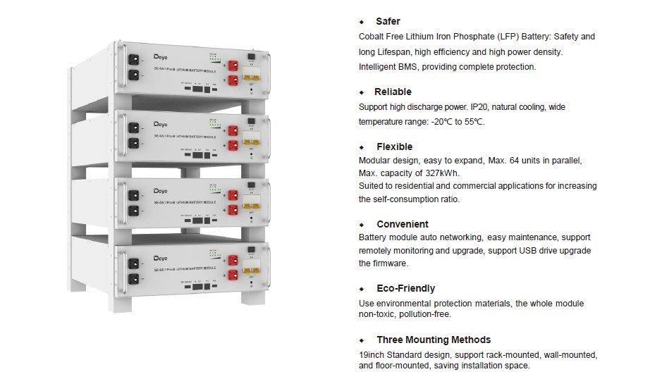 Deye 5.12kWh Lithium Battery Energy Storage System | UL1973 UL9540A | 10-Year Warranty