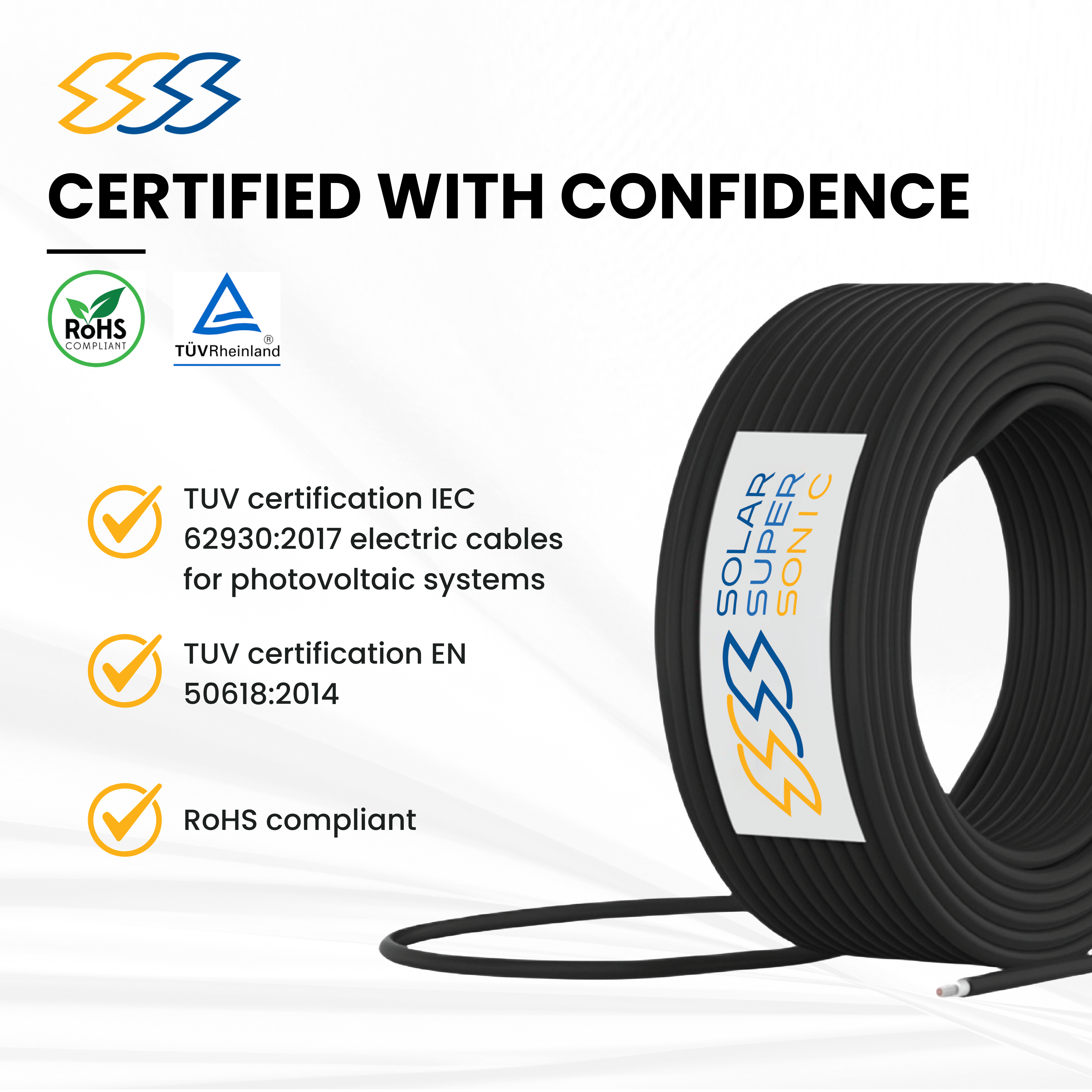 - Certifications: TUV EN 50618 and TUV IEC 62930. Meets IEC62930 and EN50618 standards